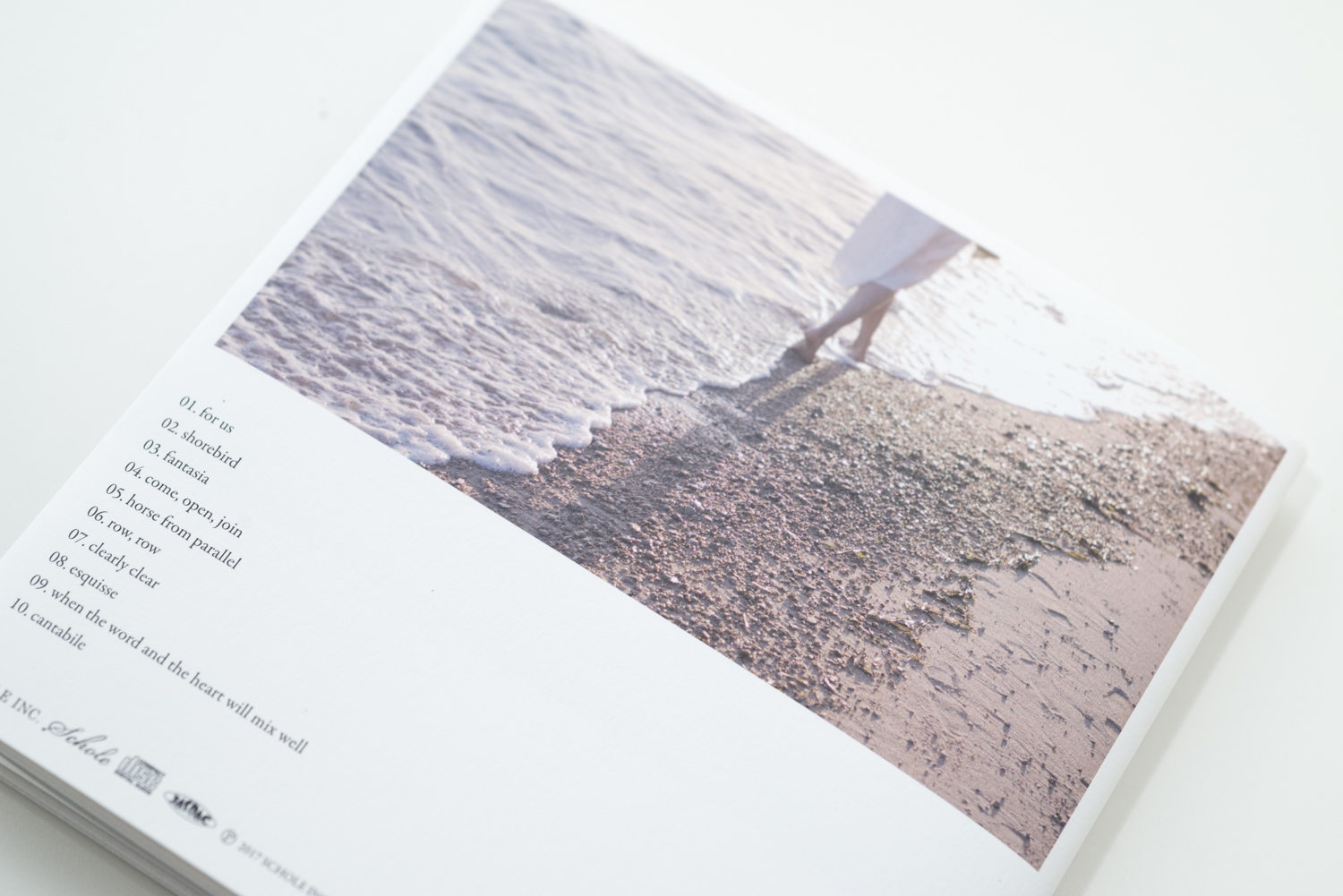 This album is created with many inspirations from ‘sea’ which she felt in her daily life. It begins with the song “shorebird”, which you will hear a gentle voice brings a bird floating on the sea wind. Also, a supporting piano will draw a flow of waves created with arpeggio sounds of moving from lower tones to higher tones. With this gently played piano without any intonation will show the image very clearly of the waves flowing. Her dreamy and feathery world is expressed in the track “fantasia”, the strings arrangements will widens up the view, and the motif played with piano brings the light as a sea splash. “horse from parallel”, a key track of this album, features a vocal as a major role of this song and a simple chord progression helps the enhancement of melodious sounds. “when the word and the heart will mix well”, an adagio-like composition, is wrapped with heartwarming atmosphere with the daintiness and delicate strings arrangements. The album ends with a gentleness tune of “cantabile”, with a singing of freely played piano, which echoes deeply to bring peacefulness.